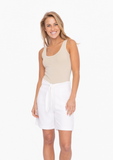 Made from a linen rayon blend fabric, these shorts are perfect for keeping you cool and stylish. The front tie adds a touch of sophistication, while the white color effortlessly pairs with any top. Feel comfortable and fashionable all day long.