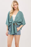This Tie Front Cardigan is your new go-to for layering with flair. Featuring a playful front tie and breezy 3/4 sleeves, this lightweight cardigan adds a fun twist to any outfit. Its open front design makes it easy to pair with your favorite tops, offering versatile style for any season. Perfect for those days when you want a little extra coverage without the weight.