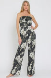 Stay on trend with this Strapless Jumpsuit. The floral print adds a touch of elegance while the zipper back allows for easy wear. Made with silkie fabric, this jumpsuit is not only stylish but also soft and comfortable.