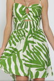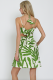 This ivory and green tropical print dress features adjustable shoulder straps, making it both trendy and comfortable. The short length adds a touch of flirty charm to any outfit. Elevate your style with this must-have piece. Rayon and Nylon blend
