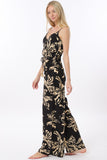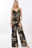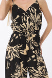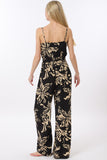 This black and tan floral printed jumpsuit is perfect for summer fun. Featuring a flowy design with an elastic waist for a comfortable fit, it also has adjustable spaghetti straps to keep you cool and stylish all day long. Easy to wear and effortlessly chic, it’s your go-to piece for sunny adventures.