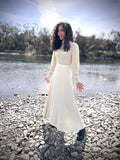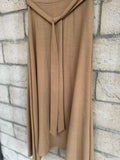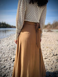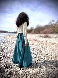 Our Irish Linen Collection is a woven, buttery soft, Linen-Rayon blend fabric. A gauzy feel & medium weight creating beautiful structure while remaining twirly and flouncy. Features a slightly layered tulip style bottom. Long ties for adjustable sizing can be tied in back, to the side, or wrapped around as a belt.