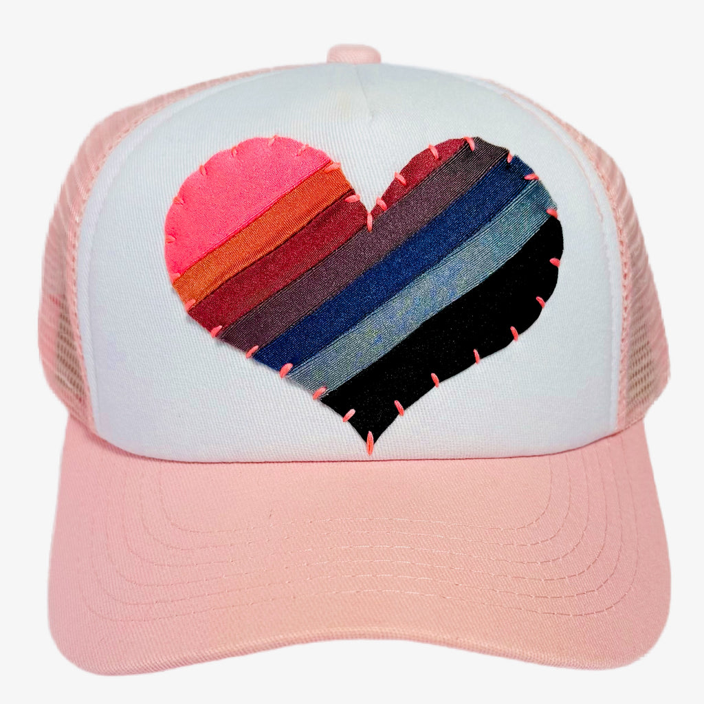 We took swimwear fabric scraps and up-cycled them into hand made, beautiful, one of a kind Heart and Star patches. Each patch is then hand sewn onto truckers hats in a variety of colors and hat shapes. EVERY ONE of them is unique and you'll be spreading LOVE every time you wear them! Handmade by Zoë Bikini