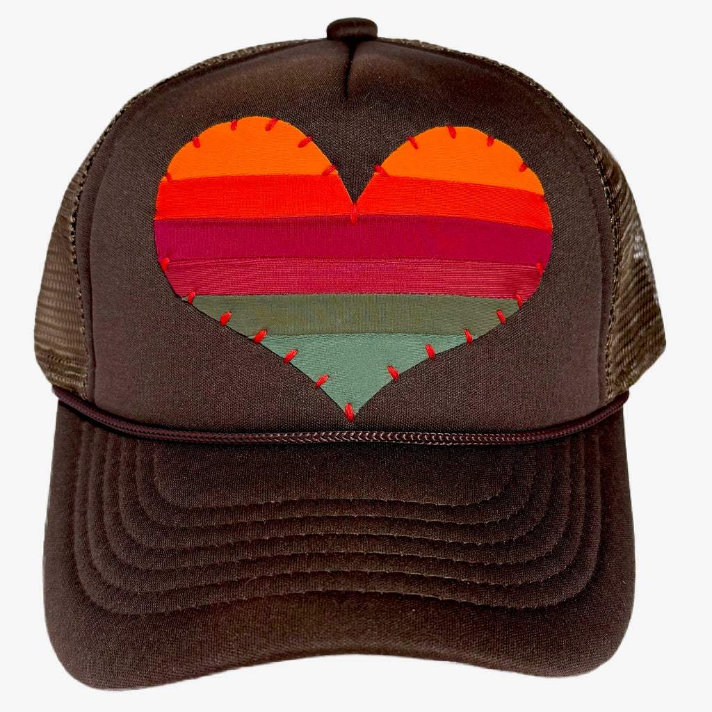 We took swimwear fabric scraps and up-cycled them into hand made, beautiful, one of a kind Heart and Star patches. Each patch is then hand sewn onto truckers hats in a variety of colors and hat shapes. Every one of them is unique and you'll be spreading love every time you wear them! Handmade by Zoë Bikini