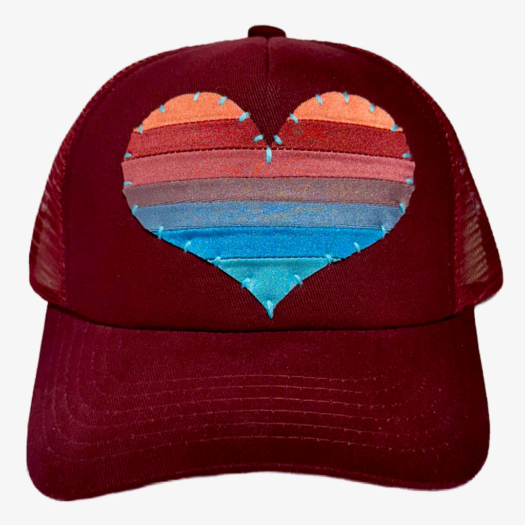 We took swimwear fabric scraps and up-cycled them into hand made, beautiful, one of a kind Heart and Star patches. Each patch is then hand sewn onto truckers hats in a variety of colors and hat shapes. EVERY ONE of them is unique and you'll be spreading LOVE every time you wear them! Handmade by Zoë Bikini