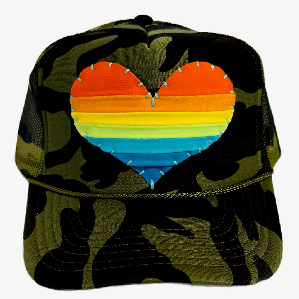 We took swimwear fabric scraps and up-cycled them into hand made, beautiful, one of a kind Heart and Star patches. Each patch is then hand sewn onto truckers hats in a variety of colors and hat shapes. Every one of them is unique and you'll be spreading love every time you wear them! Handmade by Zoë Bikini