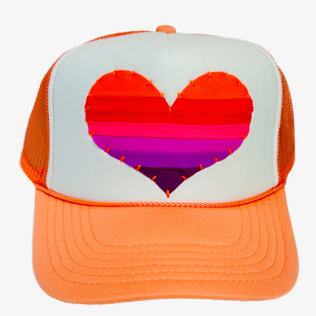 We took swimwear fabric scraps and up-cycled them into hand made, beautiful, one of a kind Heart and Star patches. Each patch is then hand sewn onto truckers hats in a variety of colors and hat shapes. Every one of them is unique and you'll be spreading love every time you wear them! Handmade by Zoë Bikini