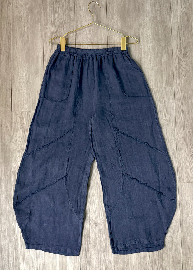 Made from 100% linen, the Linen Barrel Pants blend comfort with timeless elegance. Featuring an elastic waistband for a seamless fit and practical pockets, these pants deliver effortless style and functionality, perfect for a polished yet relaxed look. Available as a ONE SIZE fits most.