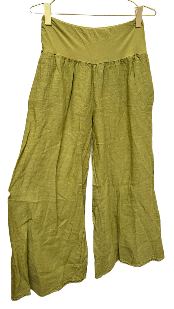 Take on the summer with a playful, flowy vibe in these Linen Pants! Made in Italy with airy linen, these comfortable pants are perfect for those hot days. Embrace the oversized style and add a touch of quirk to your wardrobe. Pair with matching top D2554 to complete the look. One size fits most!