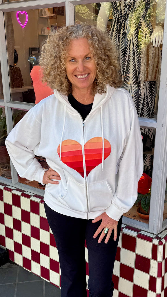Due to the delicate nature of the heart appliqué, we recommend washing the hoodie inside out in cold or warm water and only in the dryer for about 10 minutes.