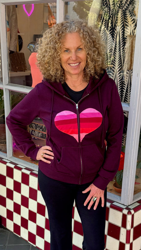 Due to the delicate nature of the heart appliqué, we recommend washing the hoodie inside out in cold or warm water and only in the dryer for about 10 minutes.