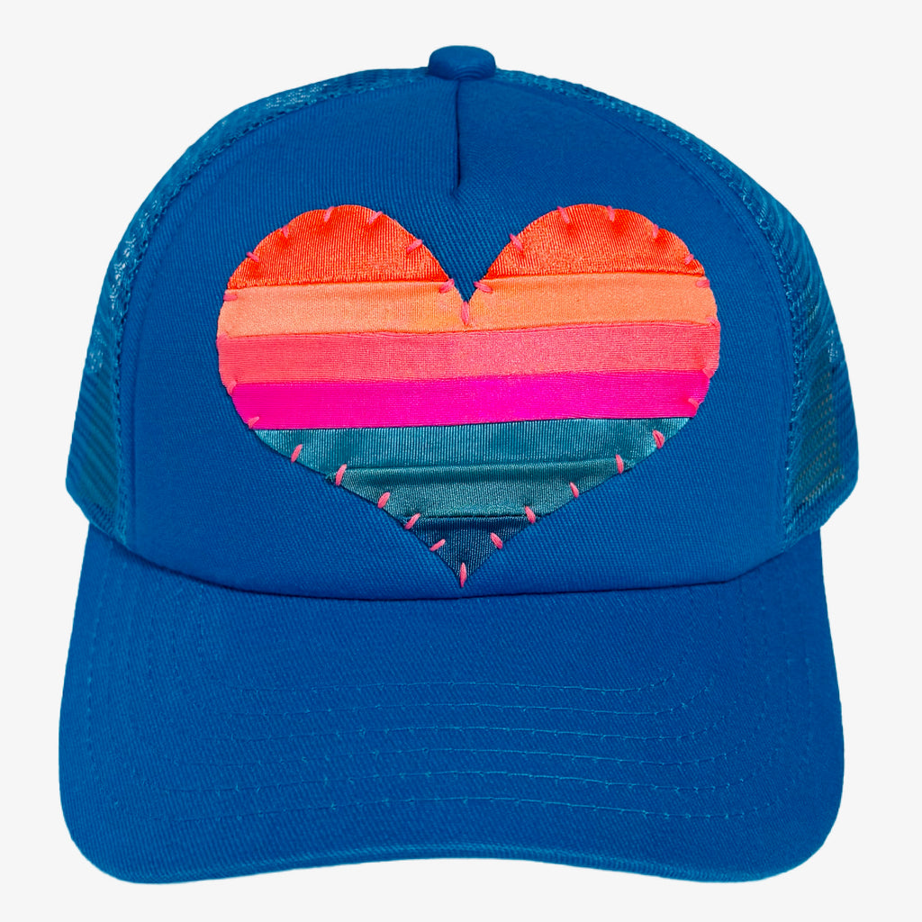 We took swimwear fabric scraps and up-cycled them into hand made, beautiful, one of a kind Heart and Star patches. Each patch is then hand sewn onto truckers hats in a variety of colors and hat shapes. Every one of them is unique and you'll be spreading love every time you wear them! Handmade by Zoë Bikini