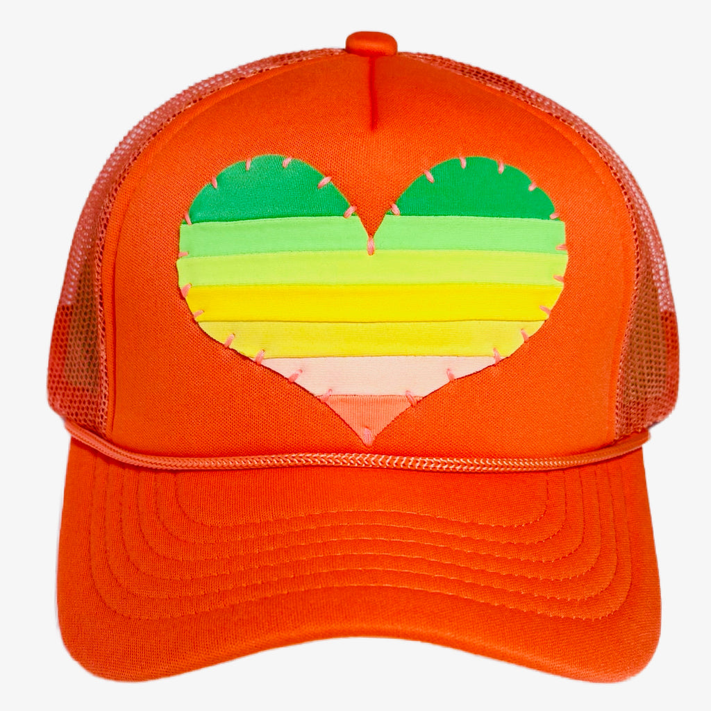 We took swimwear fabric scraps and up-cycled them into hand made, beautiful, one of a kind Heart and Star patches. Each patch is then hand sewn onto truckers hats in a variety of colors and hat shapes. Every one of them is unique and you'll be spreading love every time you wear them! Handmade by Zoë Bikini