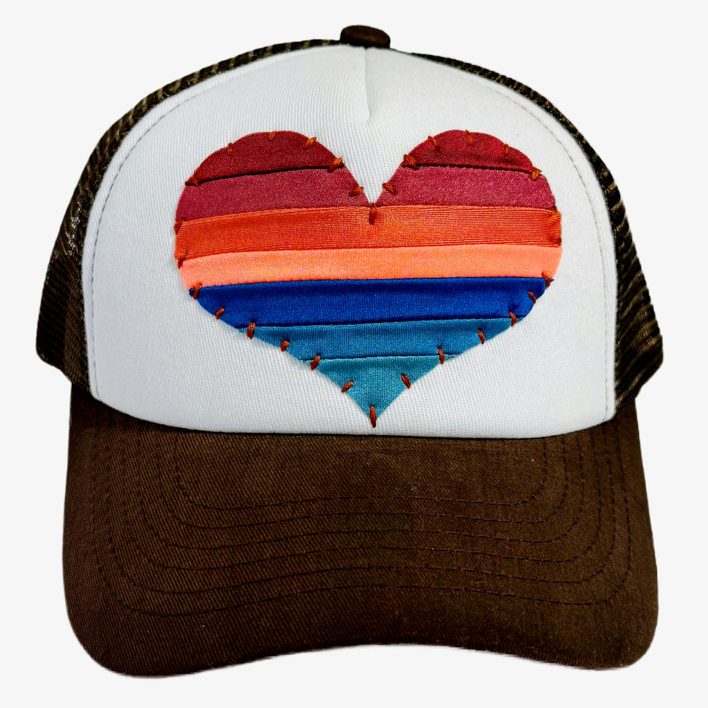 We took swimwear fabric scraps and up-cycled them into hand made, beautiful, one of a kind Heart and Star patches. Each patch is then hand sewn onto truckers hats in a variety of colors and hat shapes. Every one of them is unique and you'll be spreading love every time you wear them! Handmade by Zoë Bikini