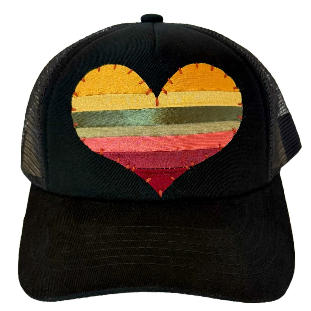 We took swimwear fabric scraps and up-cycled them into hand made, beautiful, one of a kind Heart and Star patches. Each patch is then hand sewn onto truckers hats in a variety of colors and hat shapes. Every one of them is unique and you'll be spreading love every time you wear them! Handmade by Zoë Bikini